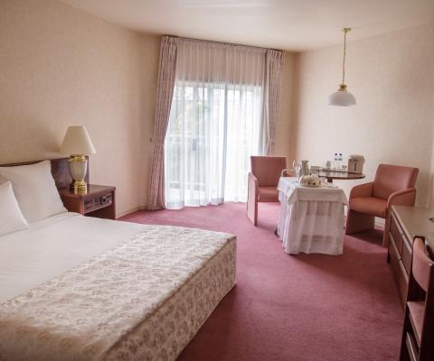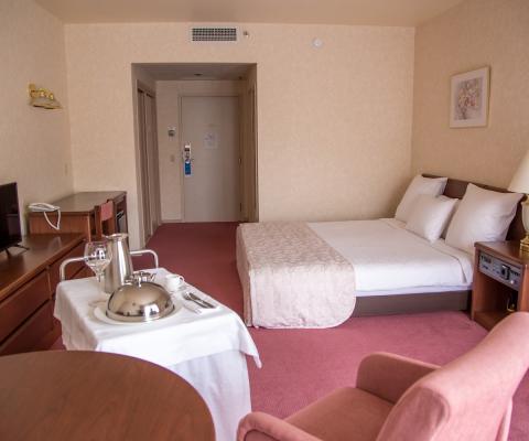 Уютный номер с кроватью «king-size» и балконом. Прекрасно подходит для бизнесменов и семейных пар. Номер с панорамным видом на Сахалинские сопки.