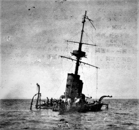 Затопленный крейсер «Новик» в порту Корсаков