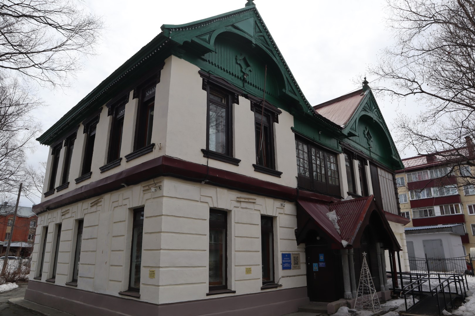 Организация располагается в самом старинном здании в городе, которое было построено в 1908 году хоккайдской строительной фирмой «Ито-гуми». Автором проекта был армейский архитектор Ясуши Тамура. Часть здания имеет оштукатуренные стены, украшенные рустовкой. Галерея западного фасада здания поддерживается модной в конце XIX века тонкой чугунной колонной. Имеет сложную крышу из окрашенного оцинкованного железа. В здании сохранились элементы оригинального интерьера, типичного для рубежа XIX–XX веков: парадная лестница с нарядной балюстрадой, украшения потолков и печи-камины.
