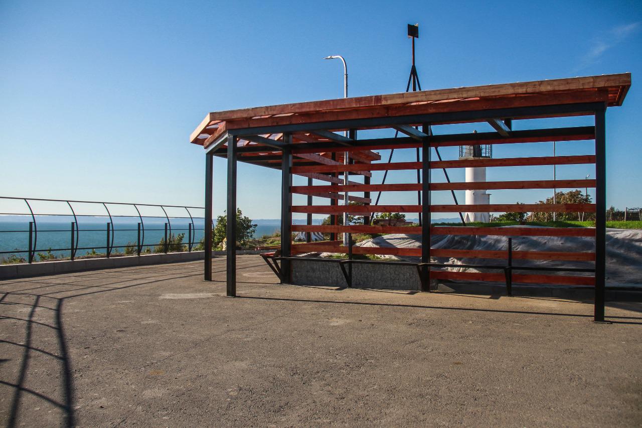 В Корсакове практически готов сквер семьи, любви и верности. Строительные работы на смотровой площадке по улице Парковой в рамках реализации федерального проекта «Формирование комфортной городской среды» подходят к концу.