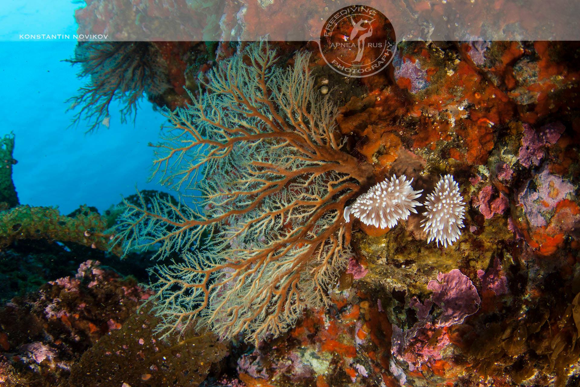 Восхитительный и непредсказуемый рельеф, буйство растительности, россыпи морского ежа, трепанга и гребешка с прекрасной видимостью превращают любой дайв в сказку. Температура воды, даже на глубине не меньше 14 градусов – а видимость 20 метров.