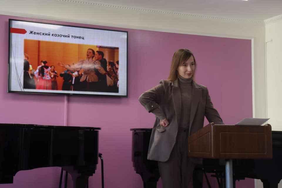 В этом году кафедра народного хорового исполнительства впервые вышла с инициативой проведения студенческой научно-практической конференции. Тема мероприятия была выбрана не случайно. Ни для кого не секрет, что творческие интересы фольклорного ансамбля «Белые росы» Сахалинского колледжа искусств (руководитель Елена Алешко) постоянно соприкасаются с наследием казаков, а именно с традиционной бытовой культурой, которая включает культуру материальную (костюм, предметы быта, оружие,…) и духовную (песни, танцы, обряды, вера, …).