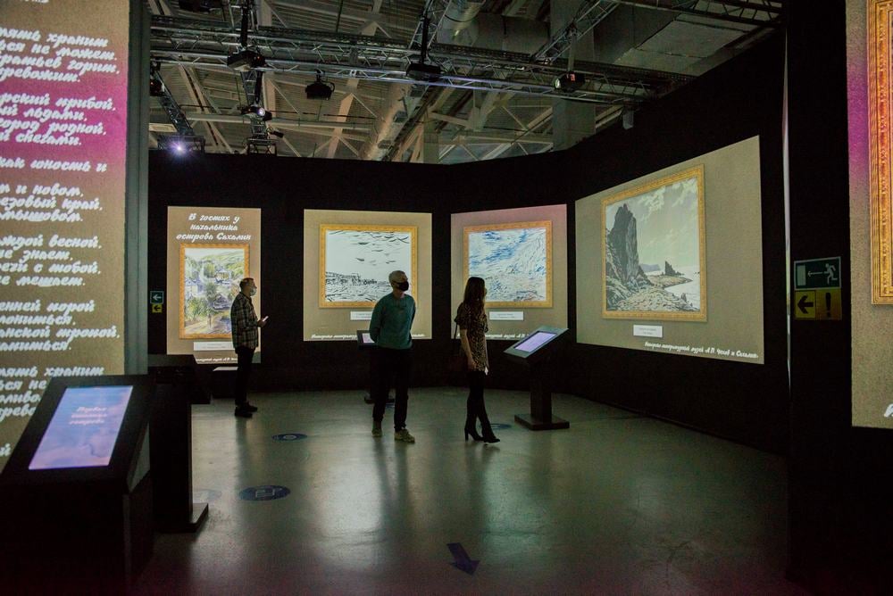 Словосочетание «ожившая живопись» в названии проекта очень точно отражает его суть – полотна словно ожили, перебравшись из фондохранилищ музеев на большие экраны. Часть картин анимирована, что позволяет еще больше погрузиться в уникальную островную атмосферу. Посетители не только получили эстетическое удовольствие от живописи и графики, но и совершили своеобразное виртуальное путешествие по различным уголкам Сахалина и Курильских островов.