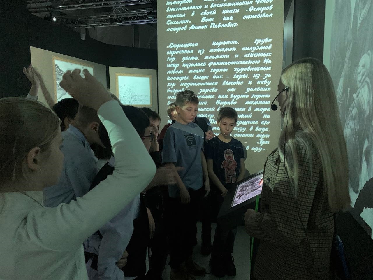 Вместе с экскурсоводом ребятам предстояло путешествие по всей Сахалинской области, при этом не покидая мультимедийного комплекса. По мере своего путешествия ученики узнавали все новые факты. Особенно удивило юных островитян, что раньше люди считали Сахалин полуостровом, а правда раскрылась спустя 40 лет.