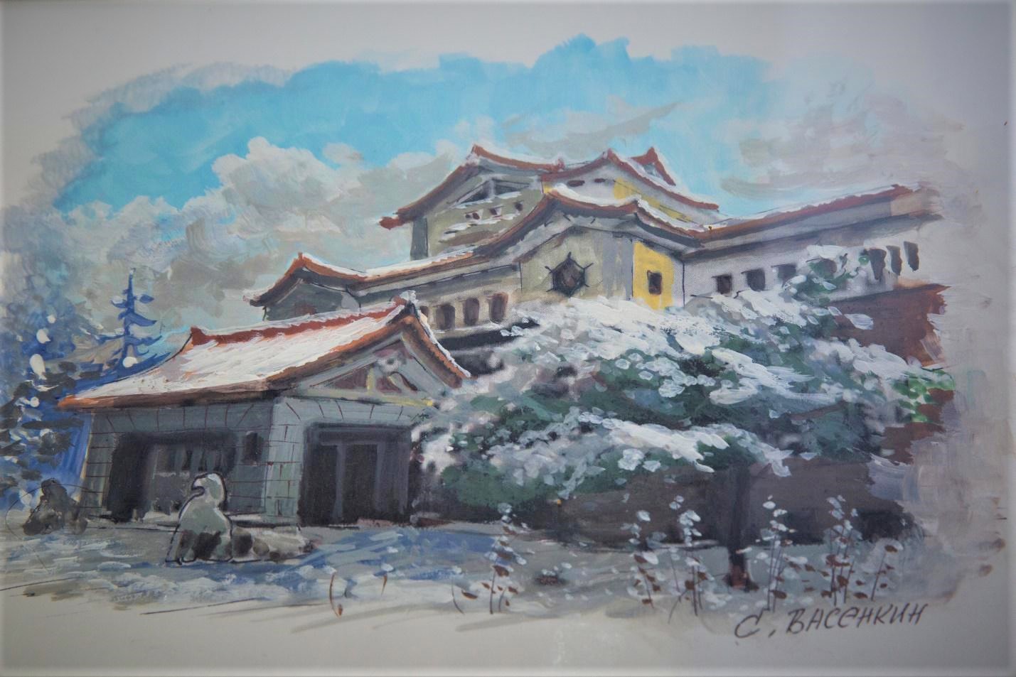 На этот раз выставка посвящена не работам одного конкретного художника, а нескольким мастерам, изложившим на холст свое видение уникального архитектурного сооружения – здания Сахалинского областного краеведческого музея. Вы увидите картины Владимира Милославского, Елены Никифоровой, Екатерины Завалишиной, Анастасии Уколовой и других художников, написанные в разных стилях и жанрах изобразительного искусства.