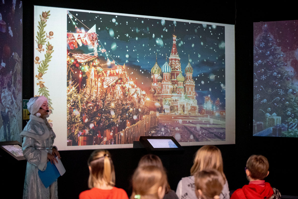 В качестве экскурсовода выступила настоящая Снегурочка. Она рассказала слушателям, о том, что Рождество до 1918 года отмечали 25 декабря (по старому стилю), а дата Нового года переносилась неоднократно, что было связано с календарными реформами.