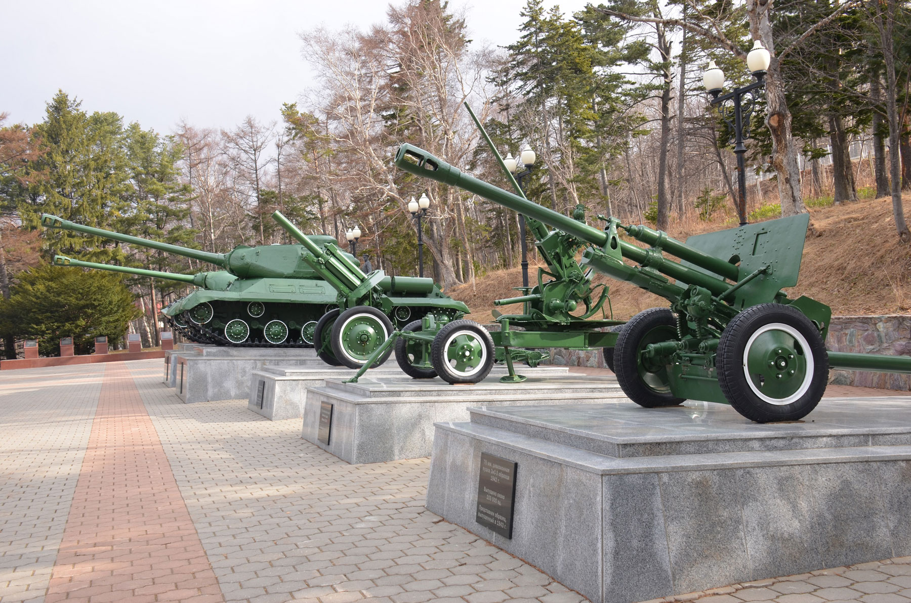 Небольшой переход к соседней площади Славы сопровождается информацией о периоде японской оккупации островного региона и демонстрацией фотографий с привязкой к тем точкам, с которых были сделаны эти снимки в первой половине ХХ века.