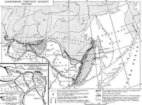 Что касается Гражданской войны, то, начиная с 1920 года, преимущество Красной Армии стало очевидным, и в марте месяце того же года американские войска были полностью выведены на родину. Однако японская армия так не поступила. В феврале 1920 года произошел так называемый Николаевский инцидент, в результате которого жертвами партизан в городе Николаевске-на-Амуре стали 384 японских местных жителя и 351 японский военный. Поэтому японские войска продолжали находиться в России до октября 1922 года (а на Северном Сахалине – до 1925 года)».
