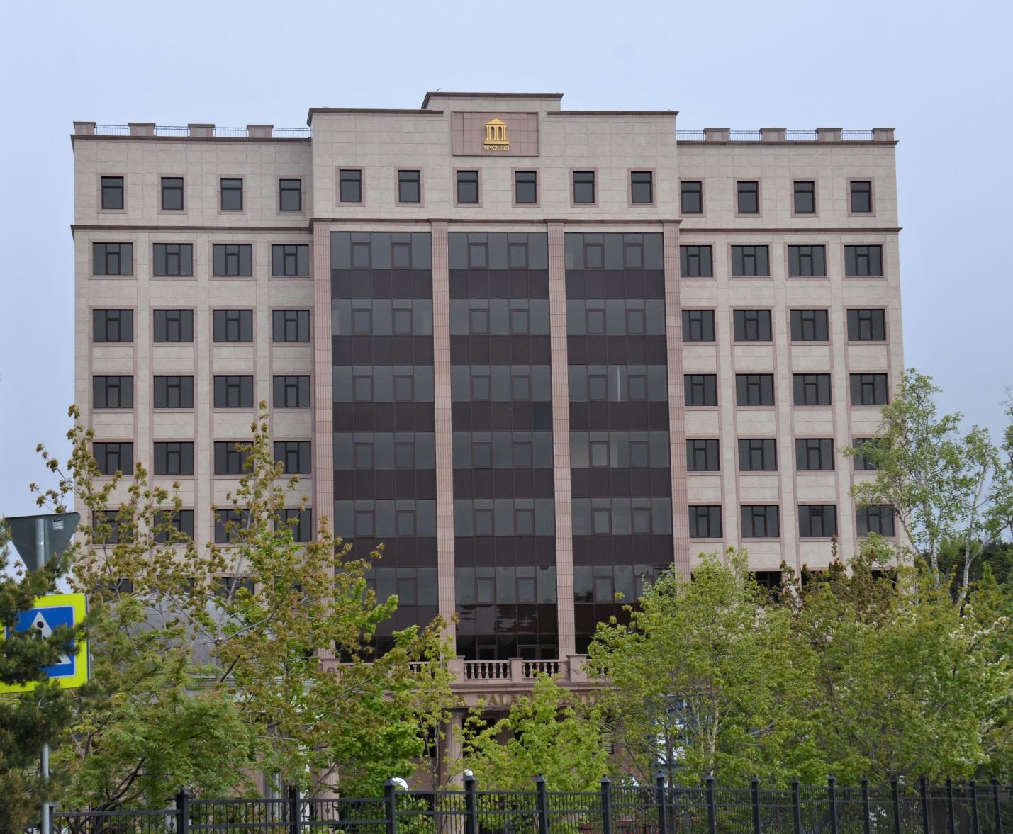 «Мега Палас Центр» – это десятиэтажный многофункциональный бизнес-центр с офисами и переговорными комнатами. Между бизнес-центром и четырёхзвездочной гостиницей обустроили мостовой переход. В новое здание переместили административный отдел. Это позволило увеличить гостиничный фонд отеля в два раза. Таким образом, Сахалинская область получила дополнительные места размещения – 100 комфортабельных номеров различной категории. Проект реализован компанией «Грин Солюшион». Инвестор вложил в проект 800 млн рублей.
