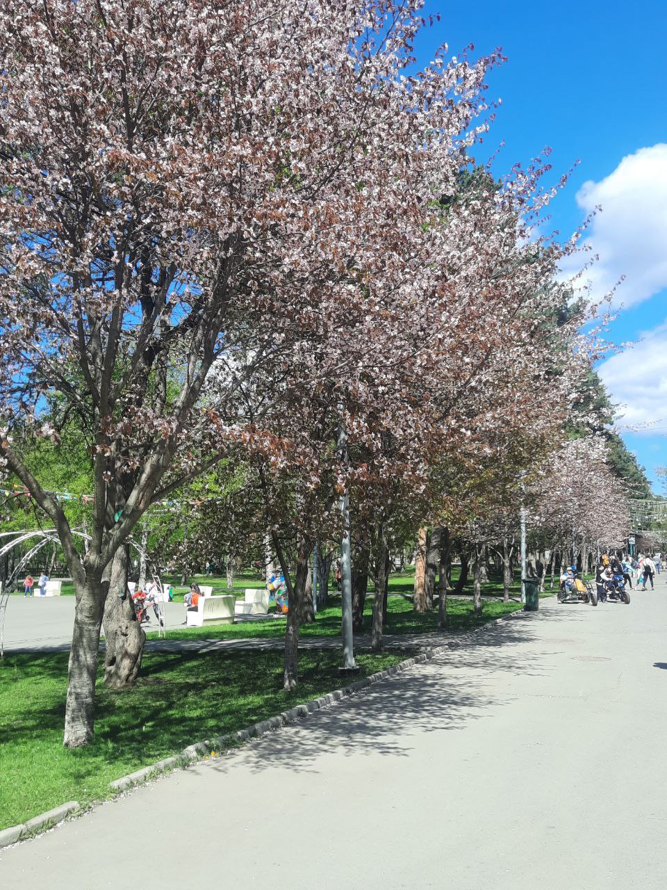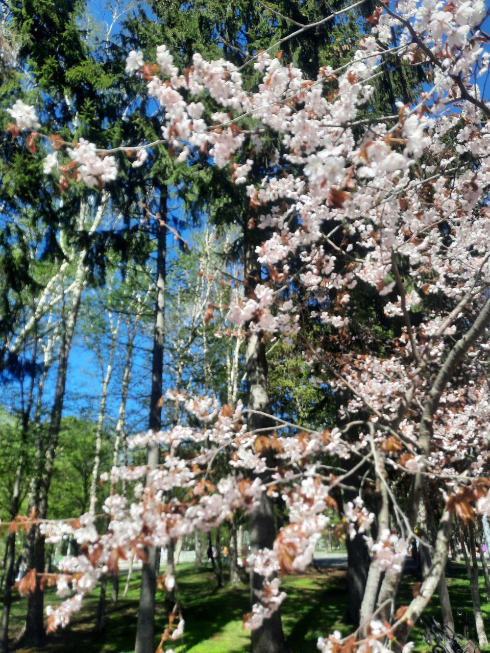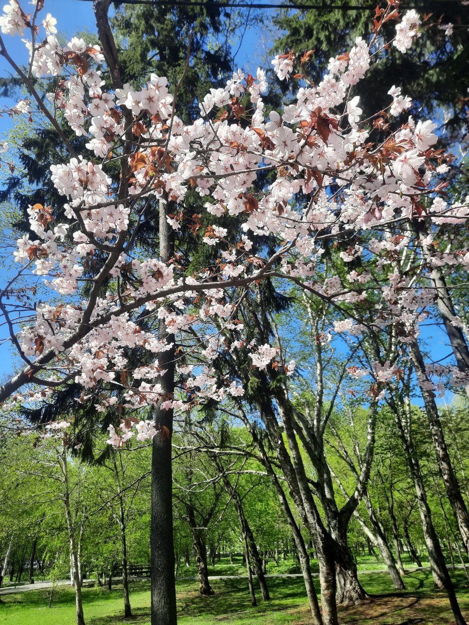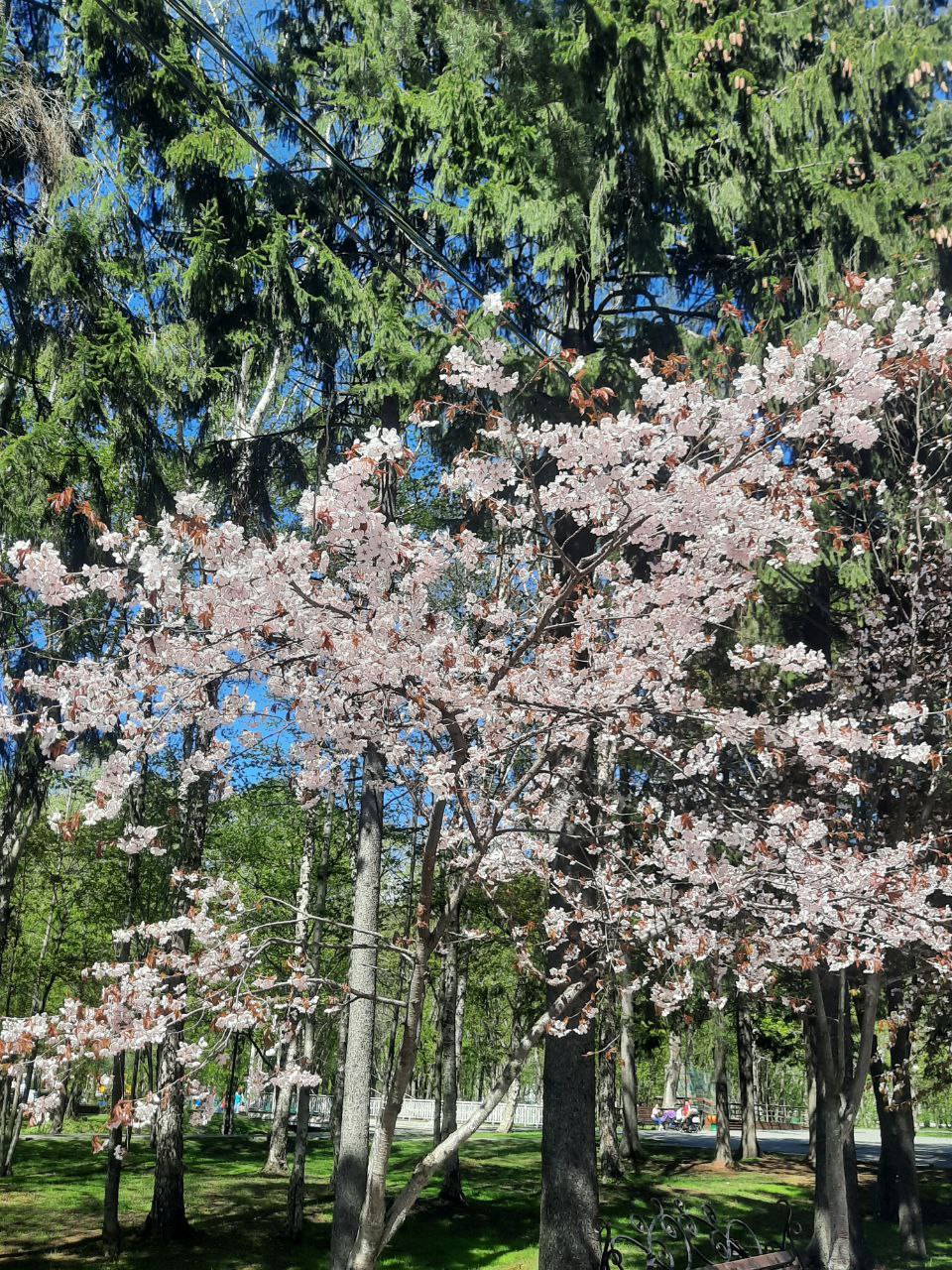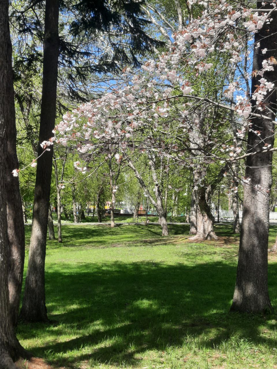 У вас ещё существует возможность побывать на аллее цветущей мелкопильчатой вишни - сакуры, в городском парке.