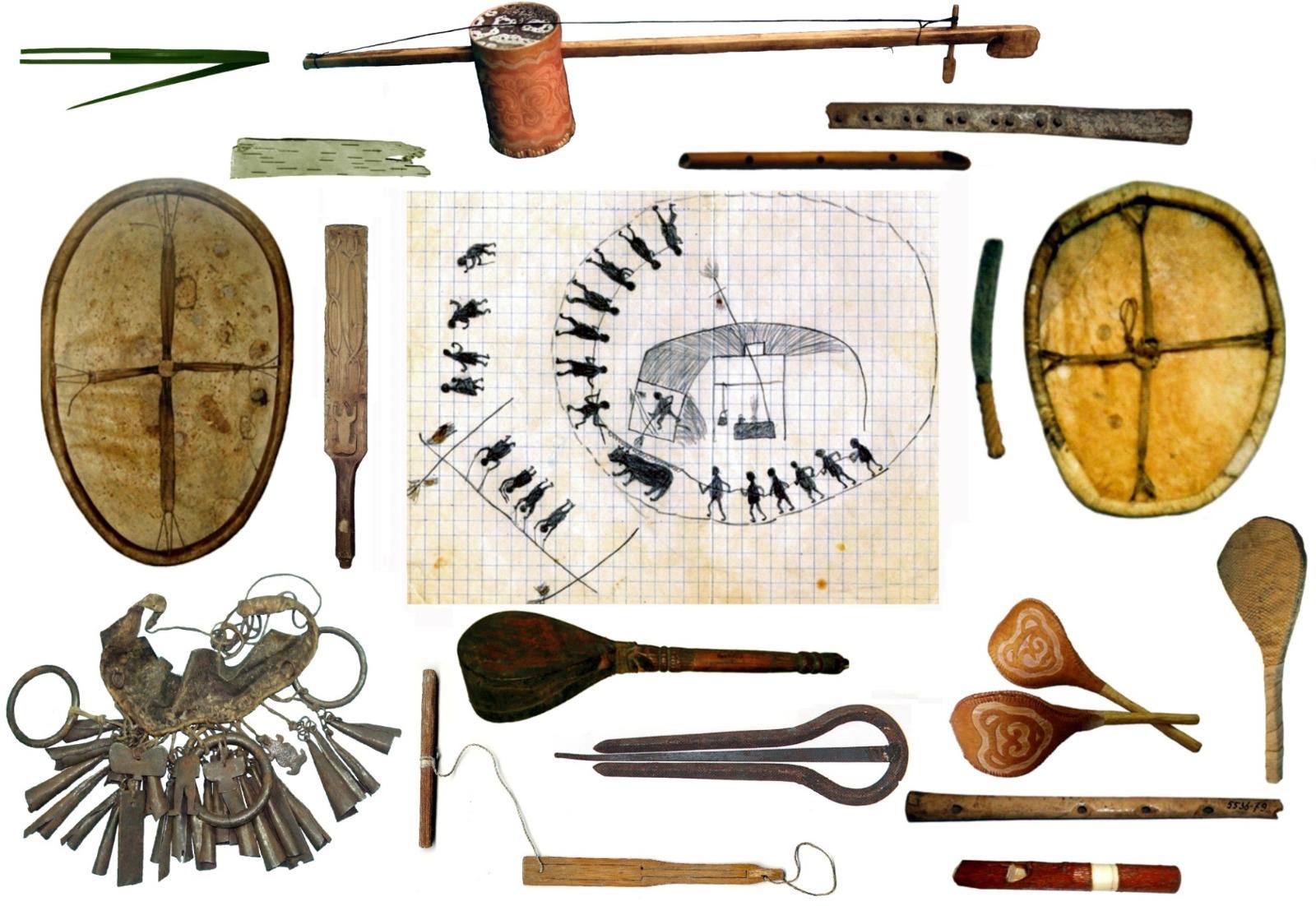 Большинство музыкальных инструментов в архаической культуре коренных малочисленных народов Сахалина являются не просто музыкальными, но обрядовыми. Бубен придавал шаману магическую силу, шаманский пояс и погремушки защищали от злых духов, музыкальное бревно олицетворяло тело медведя – «горного человека». Все обрядовые инструменты и создаваемая с их помощью музыка служили для осуществления связи с иными сферами мироздания, были способом проникновения за грань реального мира.