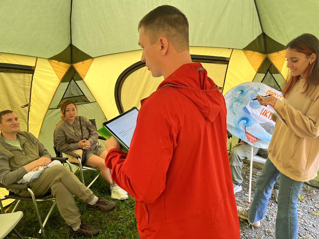 Сотрудники Культурно-туристического центра проводили призовую краеведческую викторину для героев, не испугавшихся проливного сахалинского дождя.