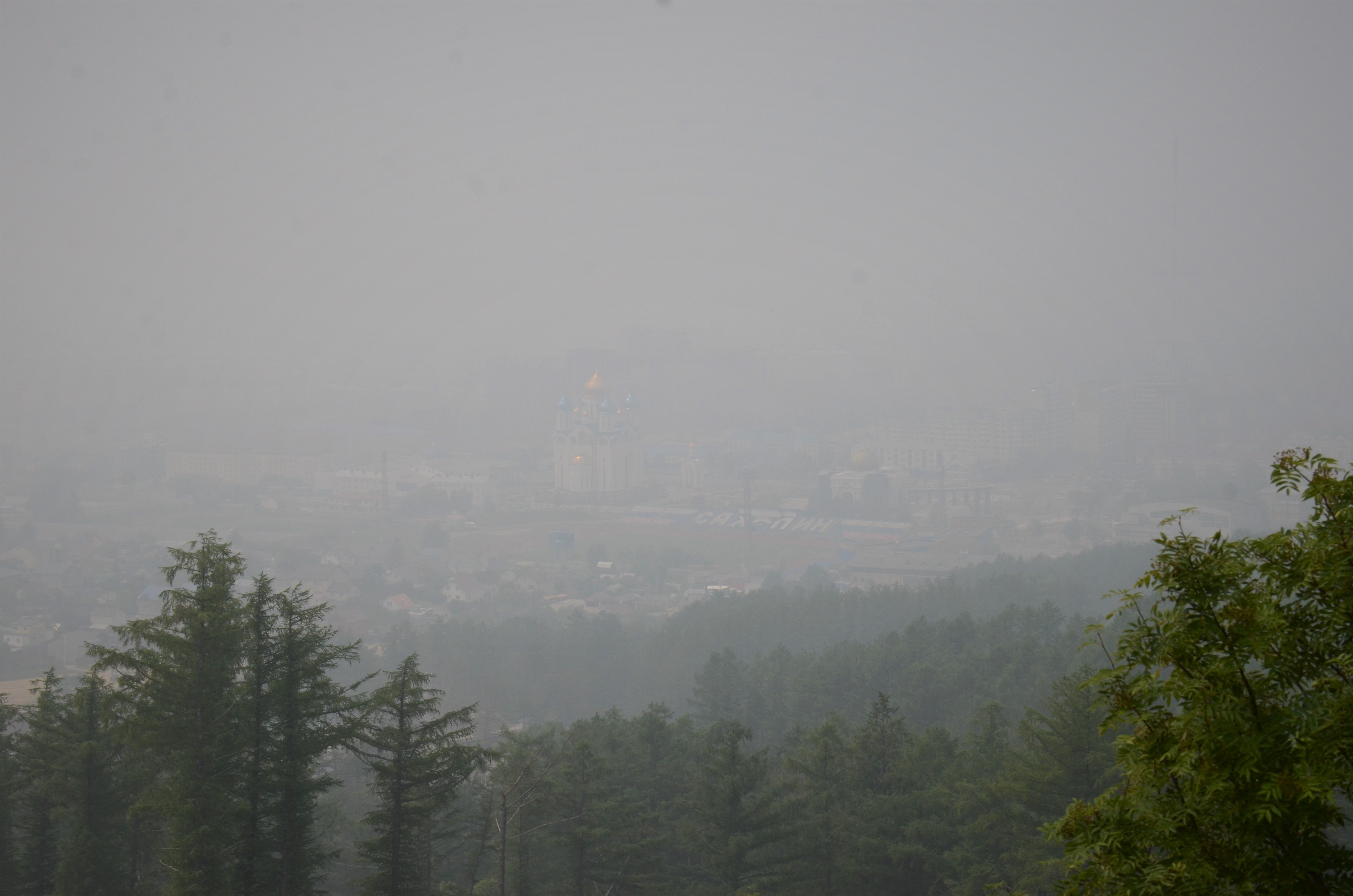 Сегодня в Якутии апокалиптические пожары, горит 1,5 млн. гектаров леса. «Гарьный» воздух из якутской тайги, западными воздушными массами принесло на Сахалин. Подобное явление, только в значительно меньшем объёме, можно было наблюдать в конце октября 2017 года. Из-за лесных пожаров на юге Хабаровского края и провинции Хэйлудзян (КНР) воздушные потоки с континента, принесли задымление на юг Сахалина.