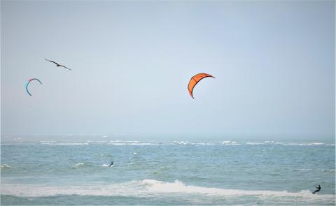 В Охотском по морю ходили скай сёрферы. Симпатичное действие. Планирование большой и хищной птицы в мощных потоках ветра и скольжение сёрферов под парусом в бурных волнах захватывающее зрелище.