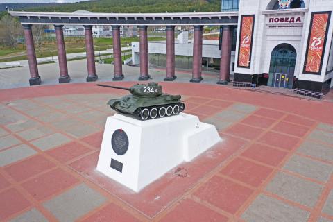 На площади Победы, у музейно-мемориального комплекса, на постаменте располагается легендарный советский танк Т-34.